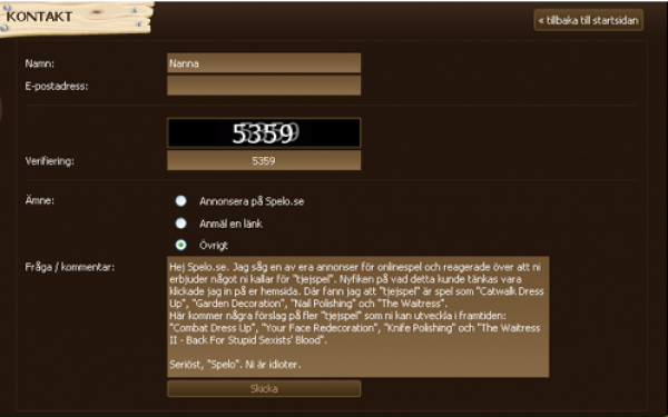 Har sett oceaner av störighet på internet. Men ett exempel var ett spelföretag som erbjöd något de kallade för ”tjejspel”. Jag skickade det här mailet till dem: