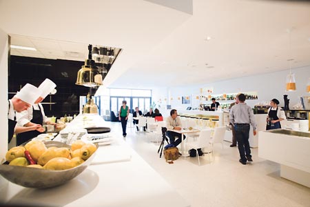 När dörren öppnas bländar det vita ljuset både oss och alla konkurrerande restauranger i närheten. Ett vardagsrum som Sue Ellen skulle älska att dricka sig full i. Trots sin elegans har The Vision en hemtrevlighet som letar sig in i var mans skinn. När du sitter där, bredvid den öppna brasan, tillsammans med fem andra sällskap, uppstår en familjekänsla och ni säger så klart hej då till grannen när ni går. Oavsett om du är konnässör eller nyfiken nybörjare är du i trygga händer. Vinlistan smeker den förstnämnda och servitören hjälper den sistnämnda med värme och känsla. Tre småbröd landar trendriktigt på vår tallrik och sedan ler vi oss igenom den femrättersmeny som förmodligen tilltalar alla. Pilgrimsmusslan må ha gått och blivit svennig men den går inte att förneka. När en grönärtsoppa varsamt hälls runtom de halstrade små liven och ett sött vin hälls i glasen skålar vi för det folkliga och för att The Vision bjuder in alla till finrummet. Maten kräver ingen kemistutbildning och det kommer ingen dimma från soppan som kan skrämma bort gäster. Det är bara njutbar mat, serverad på ett professionellt sätt. För de som lägger middagar vid minnet för sina experimentella nummer kittlar köket med ätbart guldpulver som serveras till en ingefärsfudge och målar tallriken i samma färger som inredningen i lokalen.